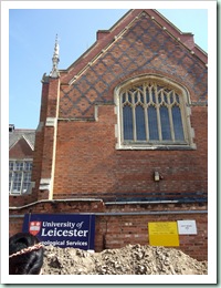 Trench One – more walls – and behind is what was formerly part of Leicester Grammar School [and before that this building was the Alderman Newton School] The medieval church was believed to be somewhere around here – Trench Three is the other side of this wall